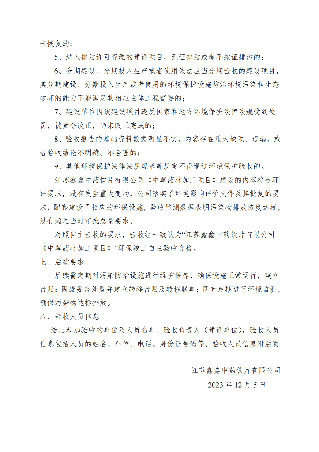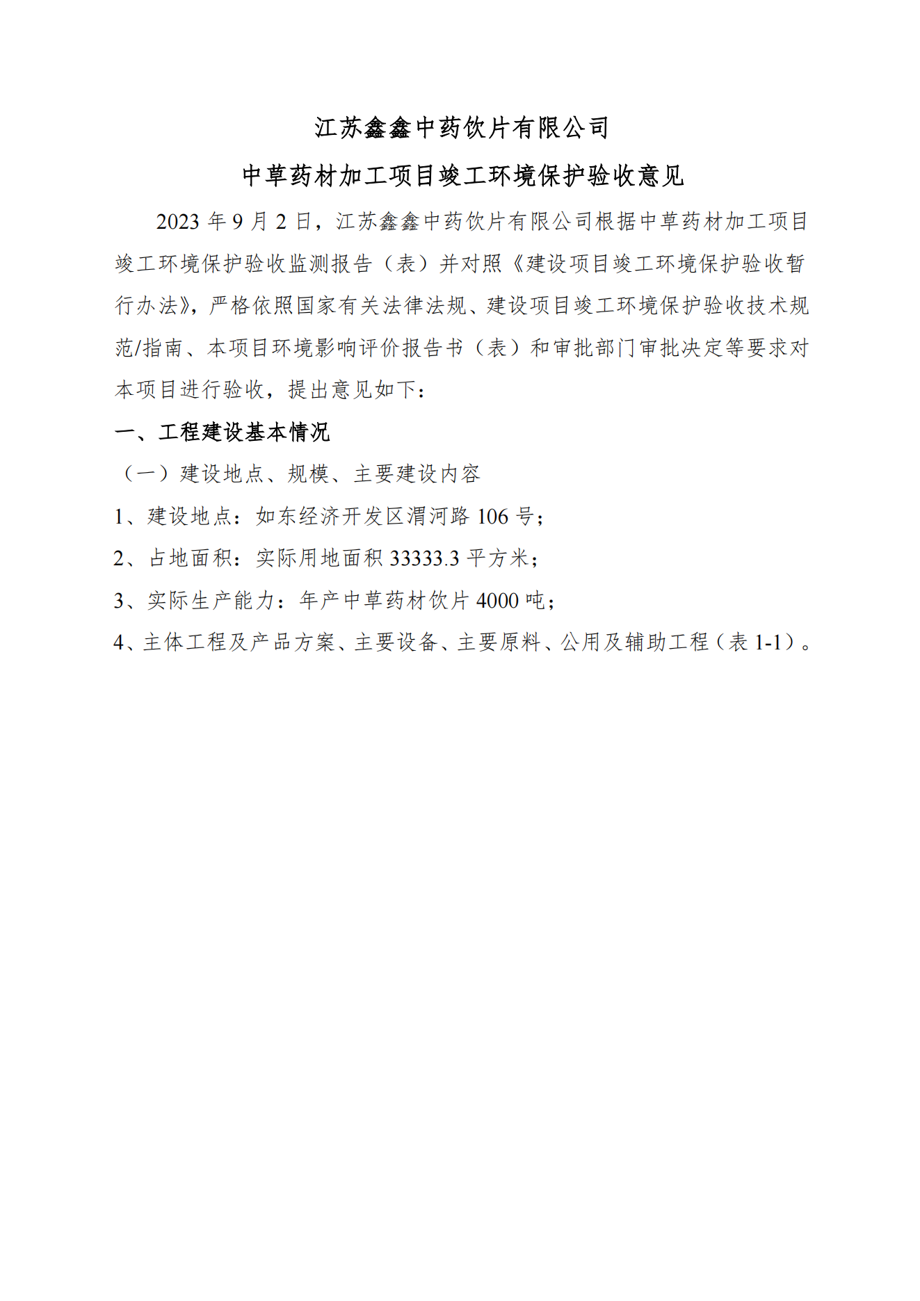 江苏鑫鑫中药饮片有限公司中草药材加工项目竣工环境保护验收公示